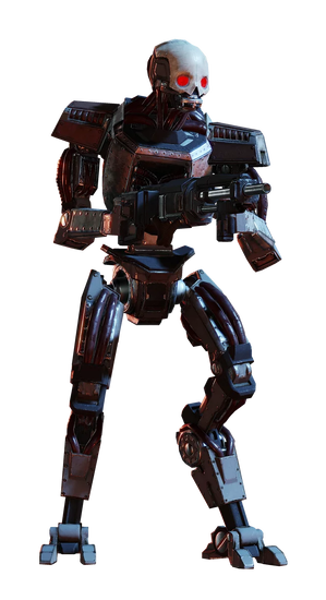 The Trooper, also known as the Raider, is a light infantry Automaton equipped with a laser assault rifle, making it a common but persistent threat on the battlefield.