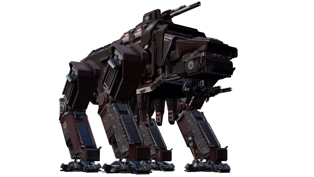 Hulks are heavily-armored siege walkers deployed by the Automatons, functioning as walking tanks with varied weapon configurations. Regardless of loadout, their primary role is that of a heavy weapons platform, designed to break enemy defenses and suppress Helldivers with overwhelming firepower.